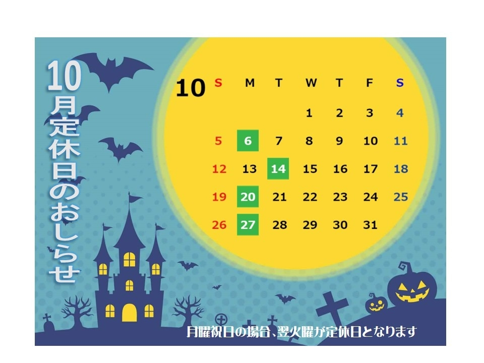 月曜日が祝日の場合、翌火曜日がお休みとなります。