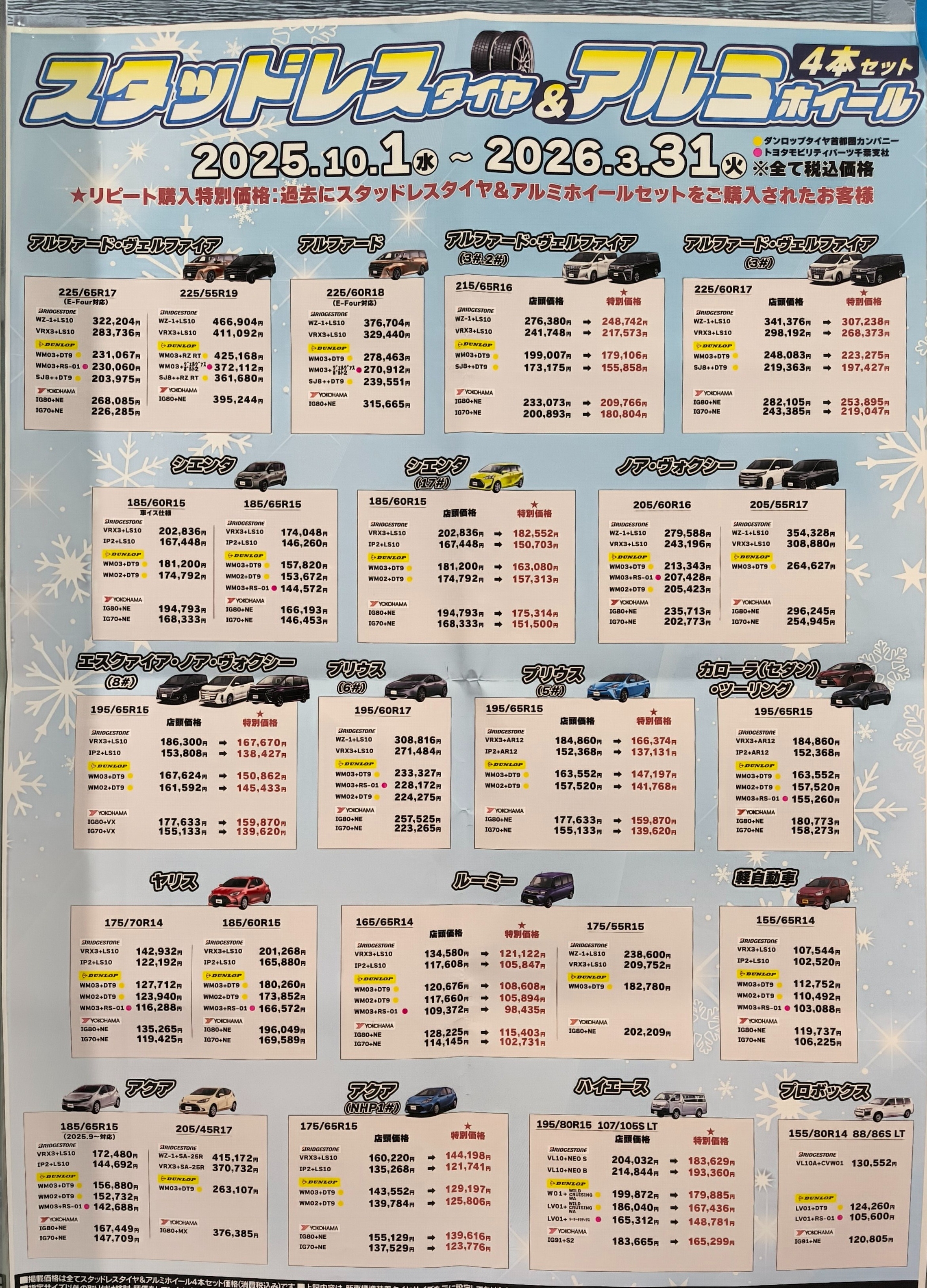 冬支度はお早めに!スタッドレスタイヤ 早期予約受付中‼