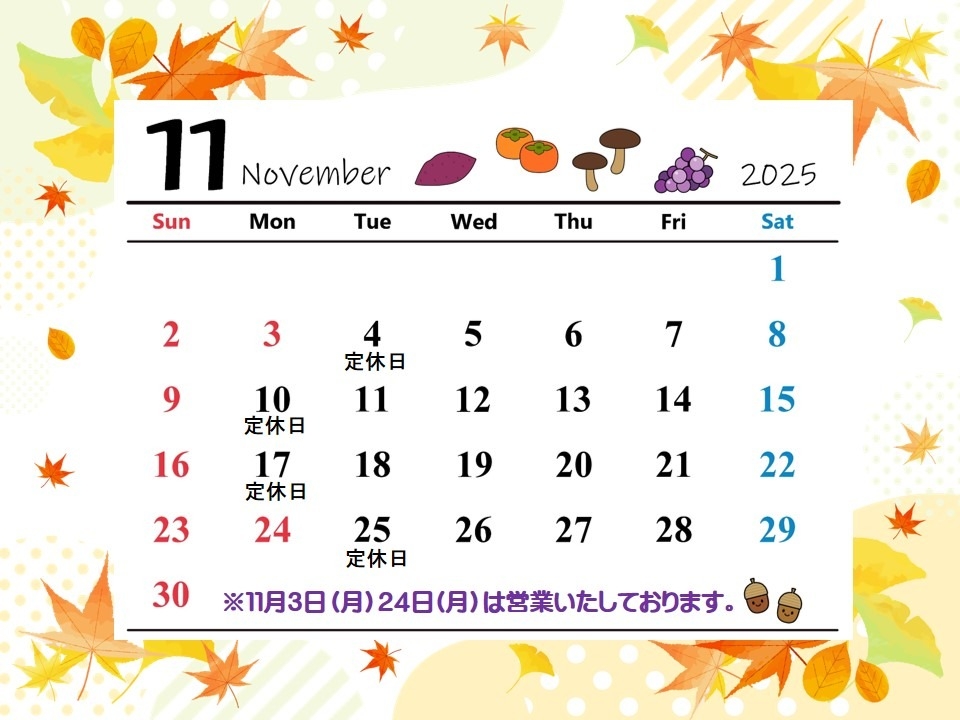 🍁11月定休日のお知らせ🍁 2025.11.01 こんにちは😊 千葉トヨペット流山店です♪ 日ごとに秋が深まる季節となりましたね🍂 11月の定休日のご案内です。 今月も、スタッフ一同皆さまのご来店を 心よりお待ちしております。 前の記事へ 店舗ブログ一覧に戻る 次の記事へ