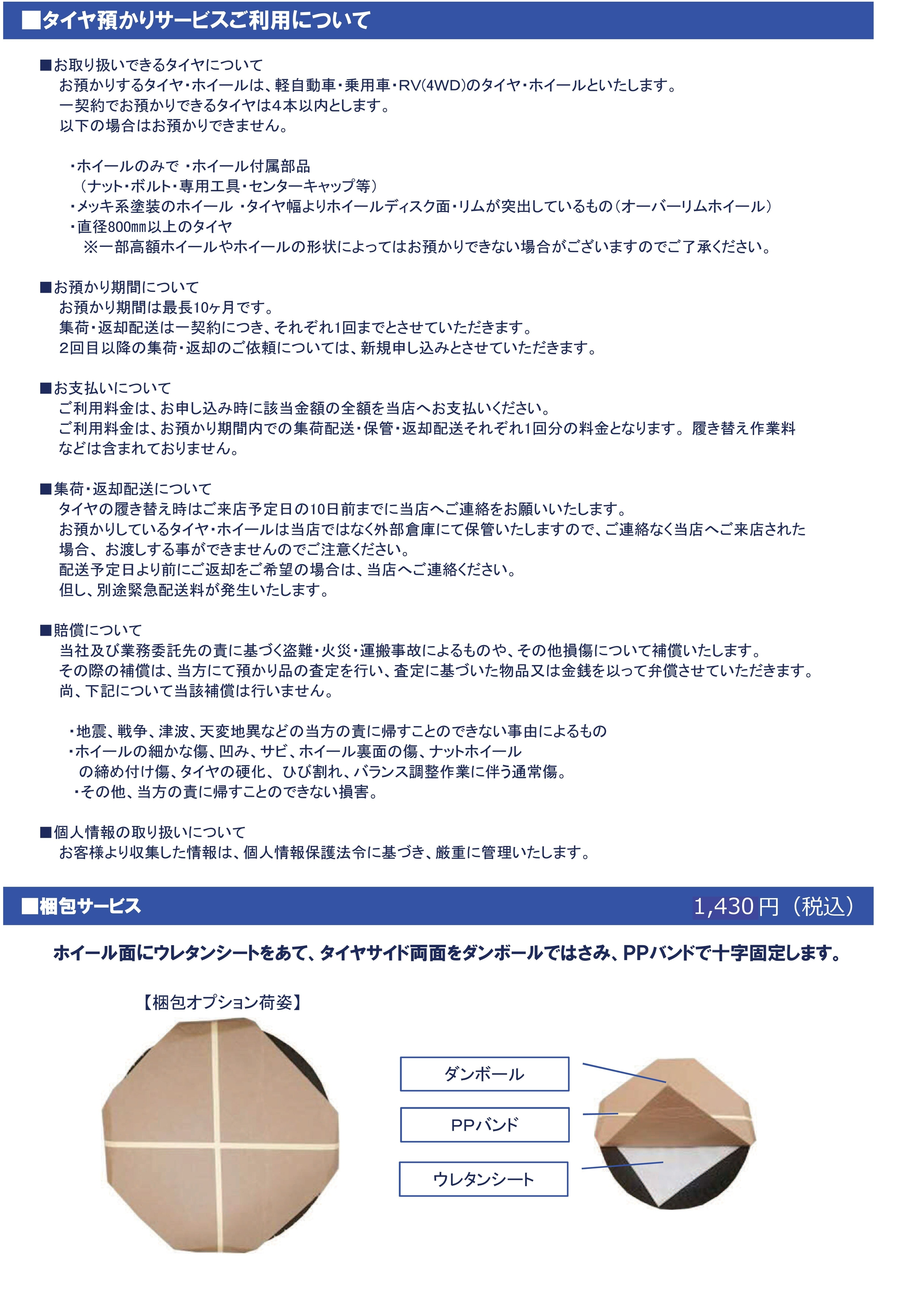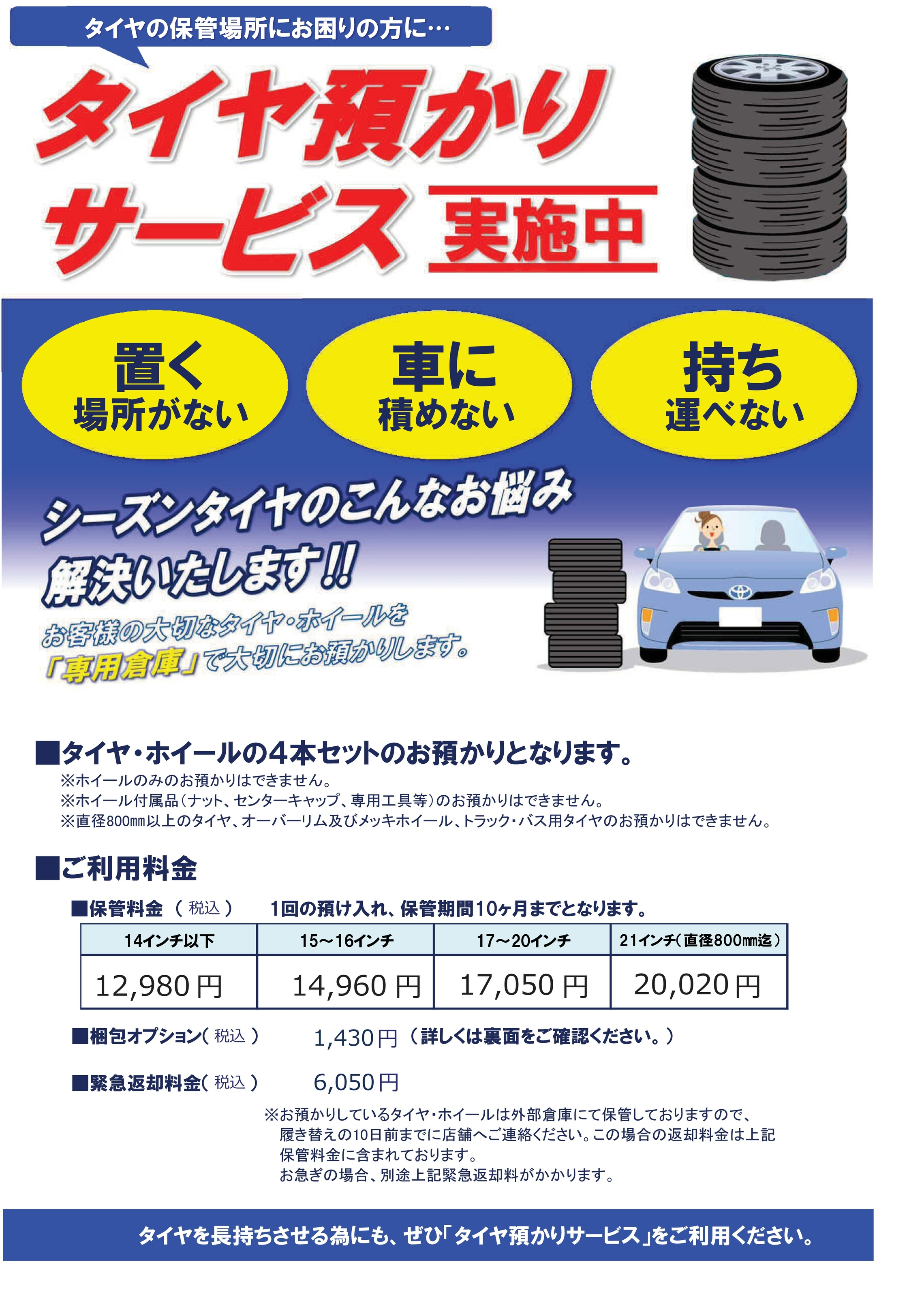 お預かりしたタイヤは次回お使いいただくまで、倉庫にて保管。