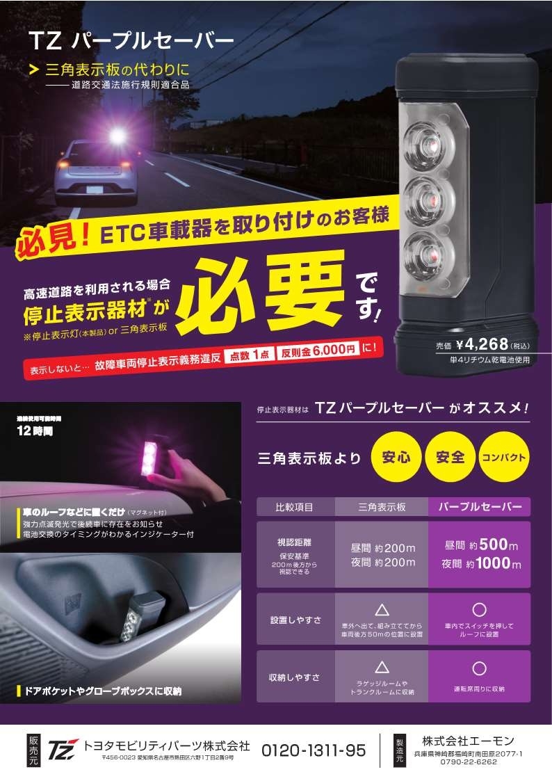 今回は新しい時代の停止表示灯『TZパープルセーバー』をご紹介します!