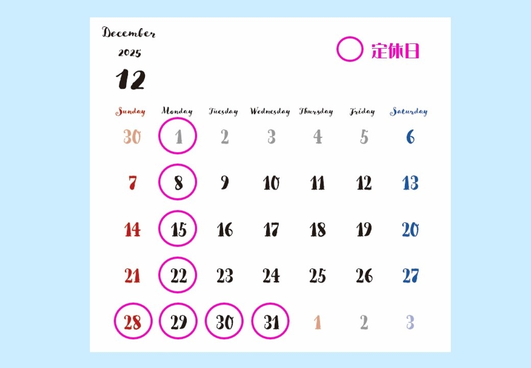 12月定休日のお知らせ 2025.12.04 こんにちは、北柏店です♪ サービス工場が混みあっておりますのでお早めのご予約をお待ちしております。 冬季休業は12月28日(日)~1月8日(木)までとなります。 前の記事へ 店舗ブログ一覧に戻る 次の記事へ