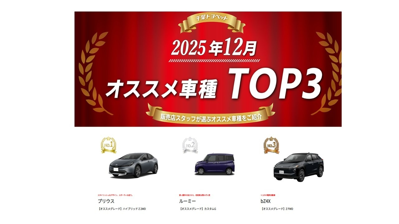 12月おすすめ車種BEST3!! 2025.12.06 こんにちは★千葉トヨペット沼南店です 12月のおすすめ車種BEST3です(^^)/ bZ4Xのご試乗予約も お待ちしております(*^-^*) 事前にご予約をお願いします♪ 前の記事へ 店舗ブログ一覧に戻る 次の記事へ