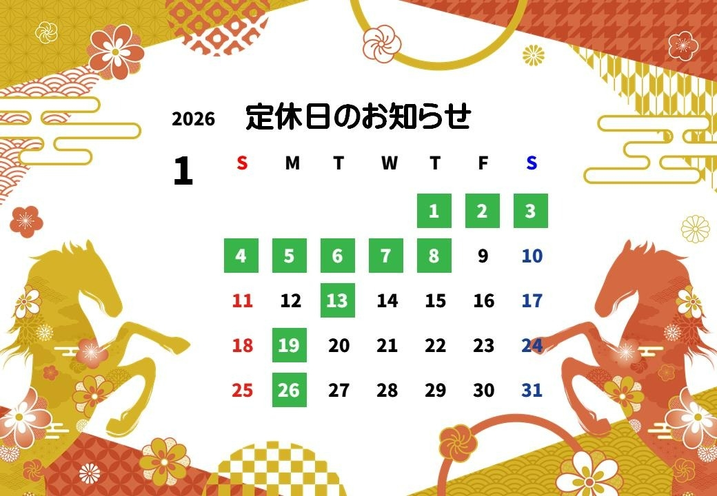 1月の定休日をお知らせいたします。