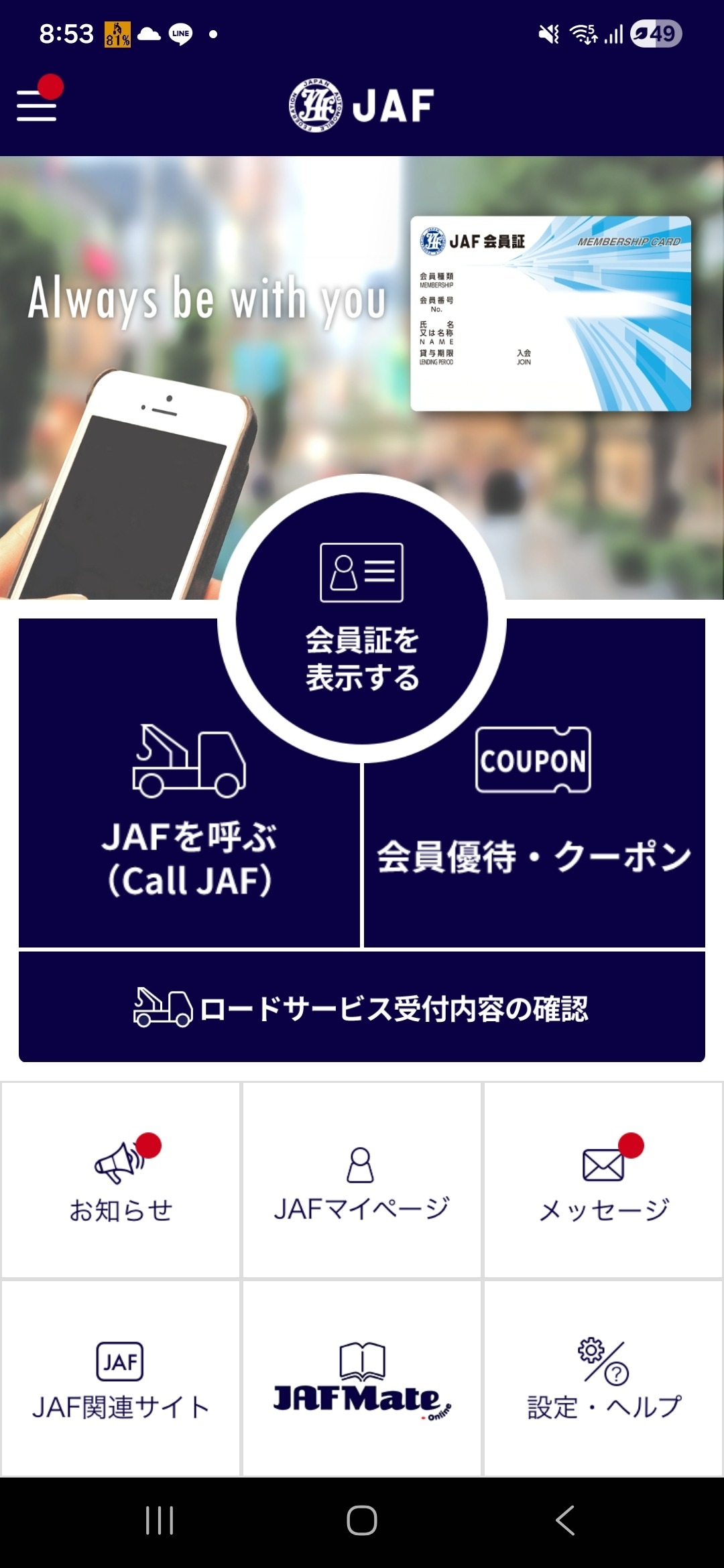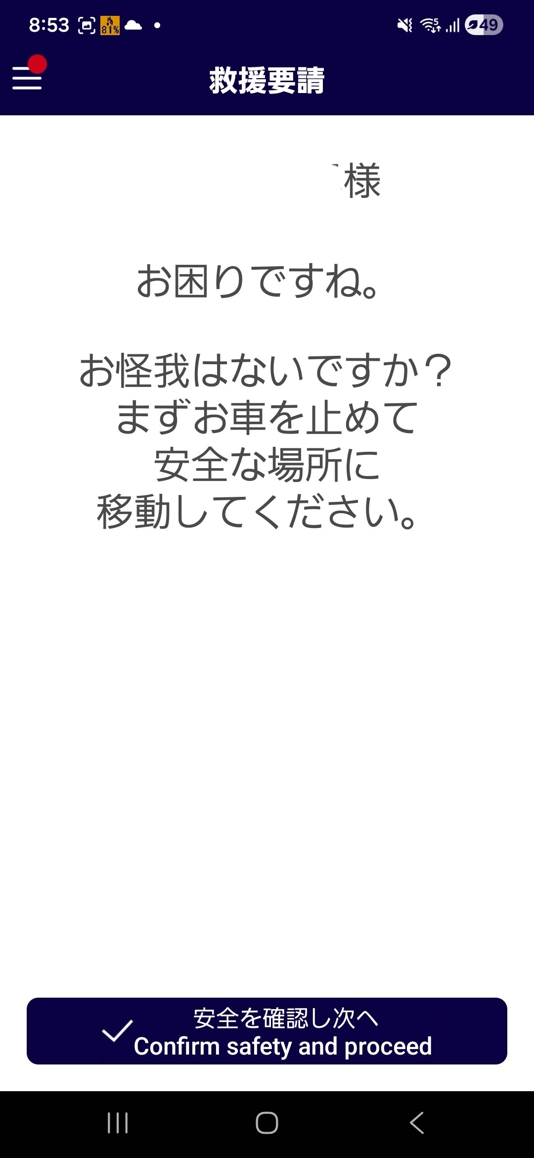 JAFアプリ、実際に使用するのは初めてだったのですが、