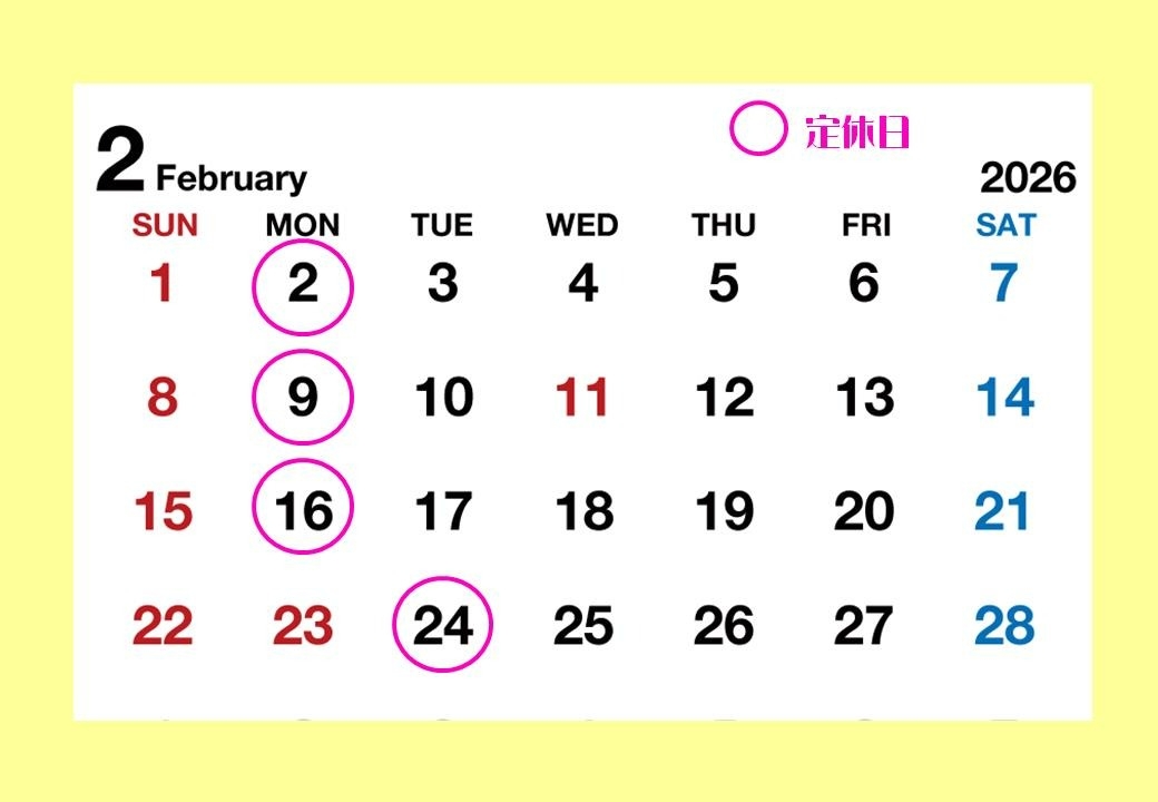 2月の定休日をお知らせ致します。