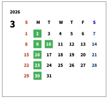 3月の定休日をご案内いたします。