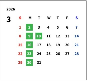 3月は毎週月曜日、10日(火)が定休日でございます💡