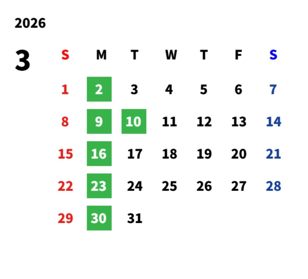 定休日のご案内・・・♡ 2026.03.01 こんにちは!大宮店です🌳 2月も沢山のご来店ありがとうございました! 3月より第二火曜日も定休日となりました。 ご了承下さいませ。 前の記事へ 店舗ブログ一覧に戻る 次の記事へ