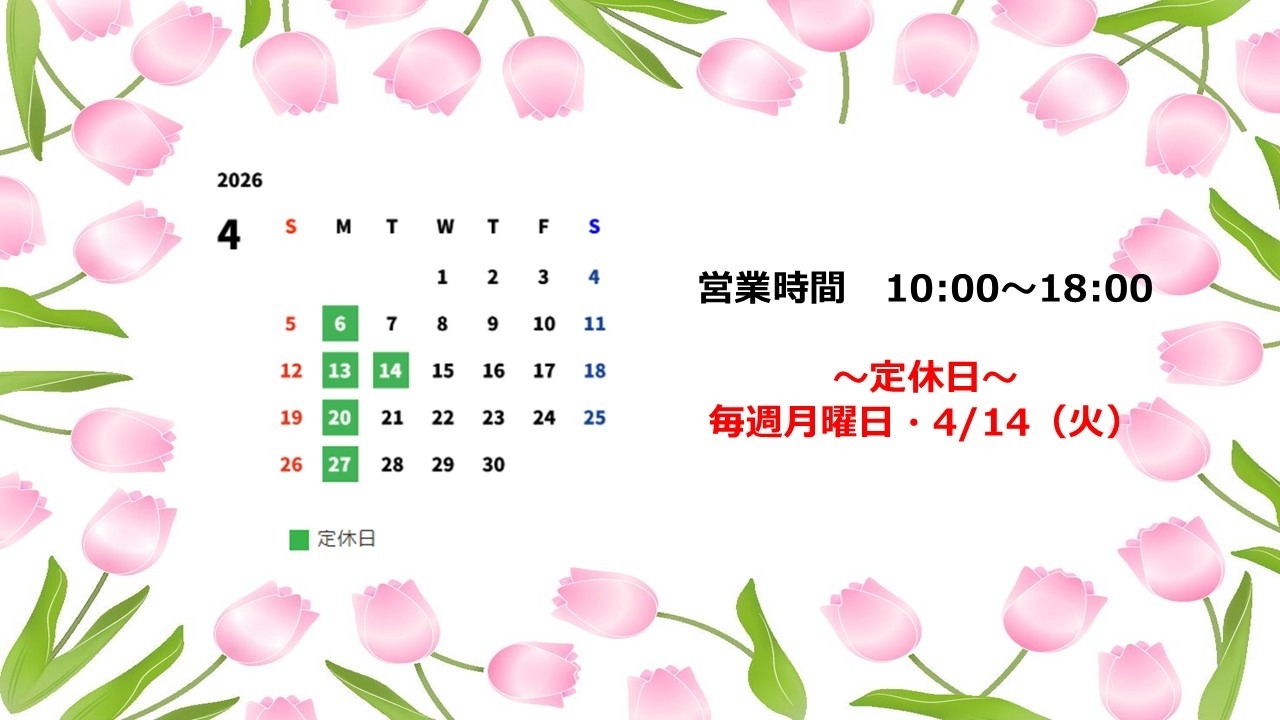4月の定休日のご案内です