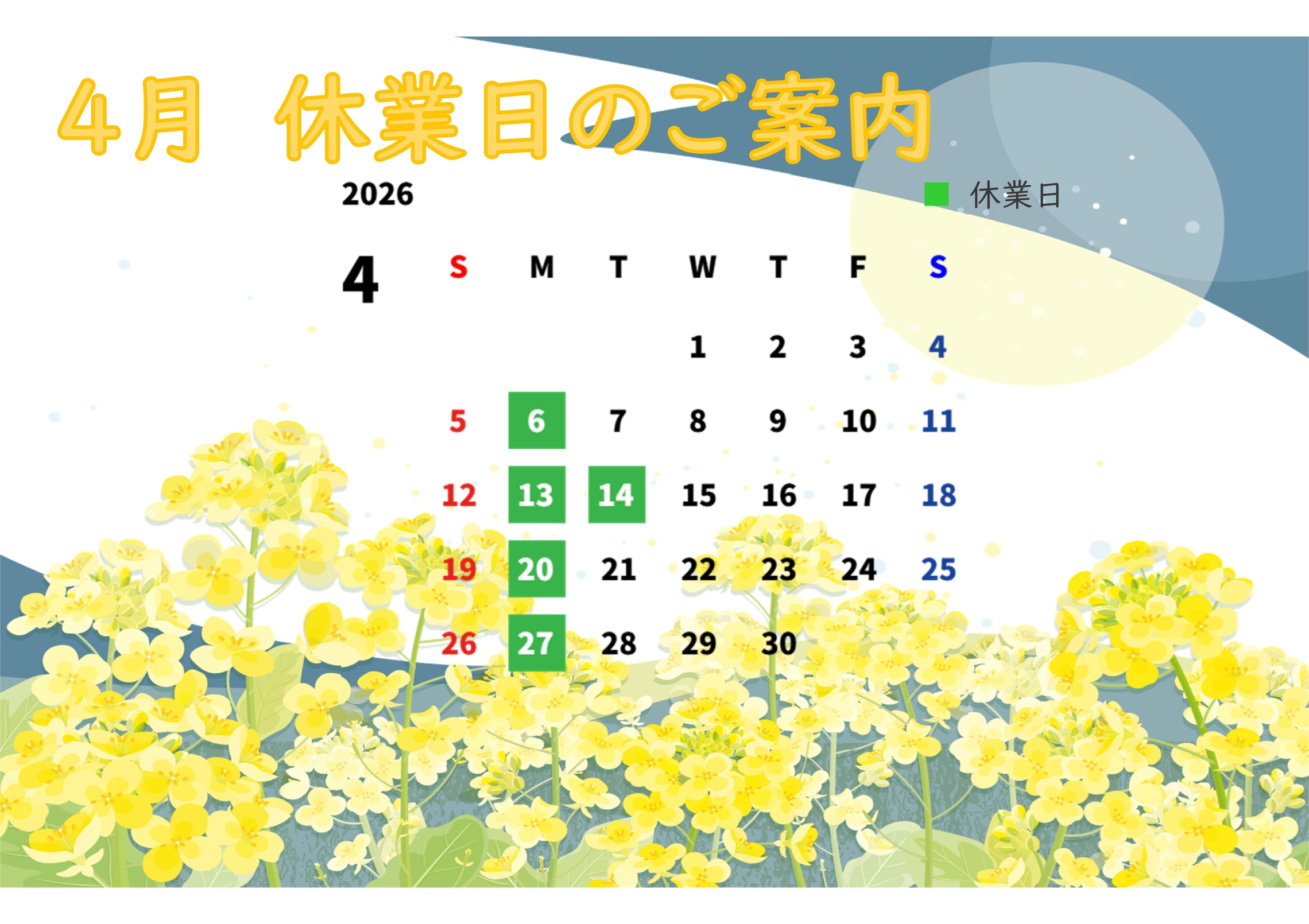 【4月 休業日のご案内】